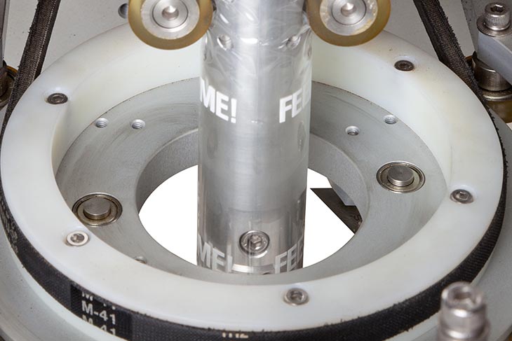 The bullet-style mandrel is ideal for oval and round containers made of plastic, glass, or metal.