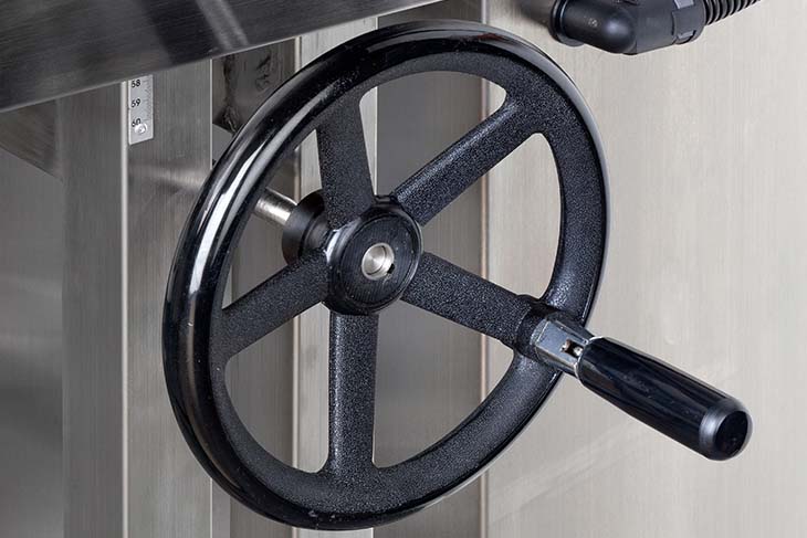 The easy-to-use hand crank allows for ideal height adjustment on virtually any conveyor.