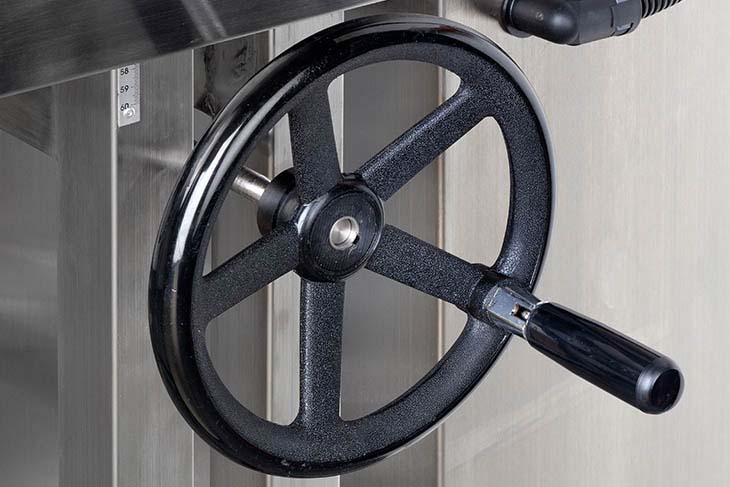 Easy-to-use hand crank allows for height adjustment to accommodate virtually any conveyor.