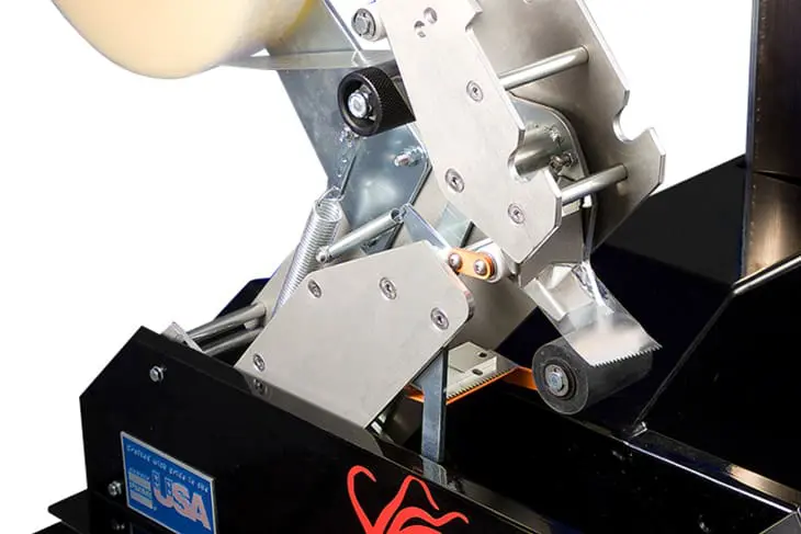 - Tape Size – 2” wide pressure sensitive tape, up to 15” diameter rolls, optional 3” wide tape