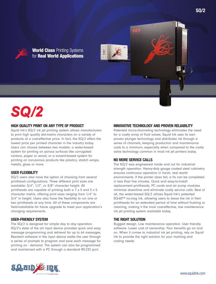 The SQ/2 utilizes water-based or solvent-based inks for printing on a wide range or porous and non-porous surfaces.