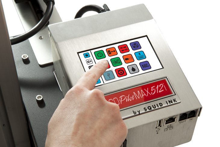 The CoPilot Max 512i utilizes the same active ink system found in Squid Ink’s CoPilot and CoPilot Max printing systems. The revolutionary design allows users the ability to tilt or rotate the print head in any direction without making height adjustments to the ink supply. The system prints hi-resolution characters, razor-sharp text, scannable bar codes and great looking logos at up to 180 dpi vertical resolution at speeds up to 480 ft/minute, offering the fastest print speeds in Squid Ink’s CoPilot family. The CoPilot Max 512i also features a large 500ml snap-in cartridge, allowing users the ability to swap ink cartridges in a matter of seconds. The generous ink volume, quick-change ink cartridge and user-friendly touchscreen design allow users to keep their line running, reducing downtime and maximizing ROI.