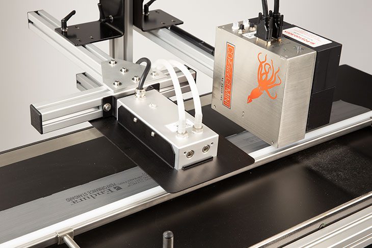 As a proven complement to Squid Ink’s growing family of industrial printing systems, Squid UV gives users more options for their coding and marking applications. In addition, water-cooled UV LED curing systems are clean and efficient, improve print quality due to immediate dry time, help to increase production rates, and are easy to integrate into existing production lines. Any way you look at it, Squid UV curing systems provide significant benefits to your manufacturing process.